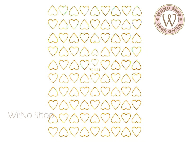 Gold Holographic Heart Frame Adhesive Nail Art Sticker - 1 pc (WG434GH)