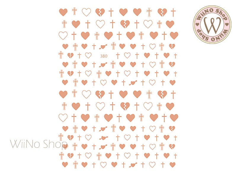 Rose Gold Cross Heart Adhesive Nail Art Sticker - 1 pc (JO-380)