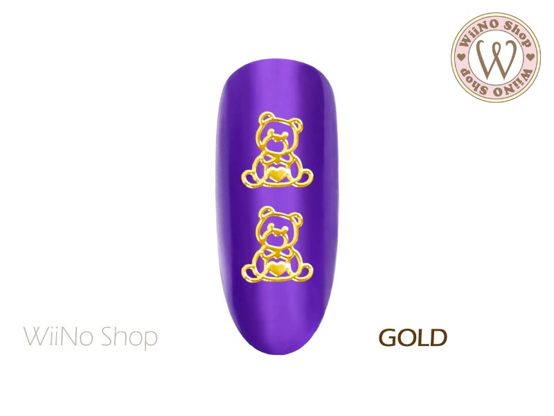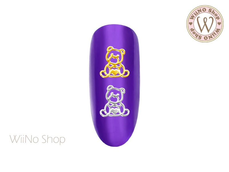 Teddy Bear with Heart Ultra Thin Nail Art Metal Decoration - 25 pcs