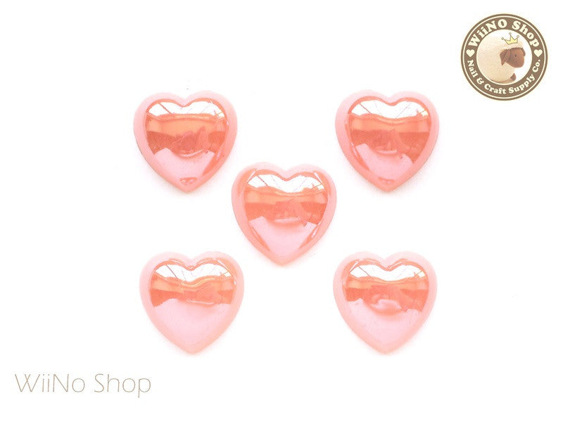 18mm Heart Pink Coral Metallic Flat Back Acrylic Cabochon - 5 pcs