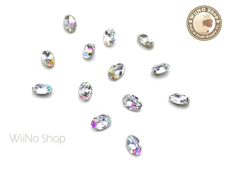 4 x 6mm AB Clear Oval Point Back Crystal - 5 pcs