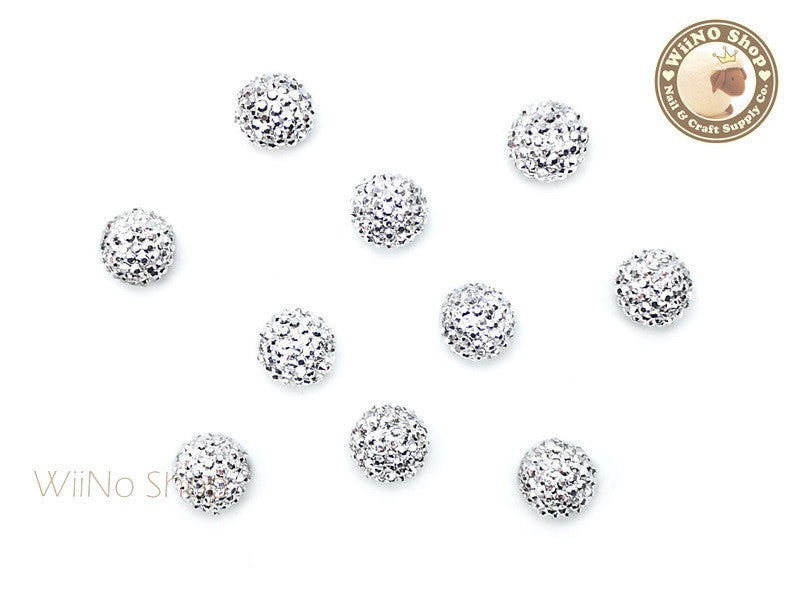 6mm Silver 3D Acrylic Rhinestone Ball Cabochon - 5 pcs
