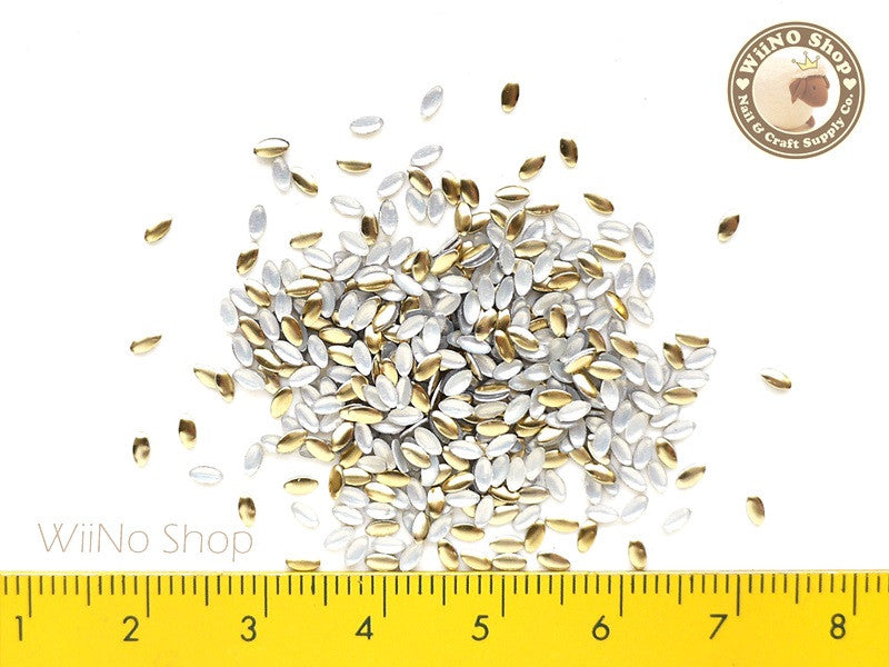 1.5 x 3mm Gold Mini Marquise Metal Studs - 100 pcs
