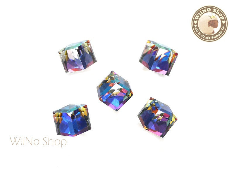 10mm Blue Rainbow 3D Square Cube Crystal Rhinestone - 2 pcs