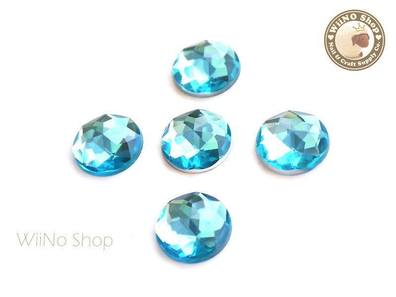 15mm Blue Aquamarine Round Flat Back Acrylic Rhinestone - 5 pcs
