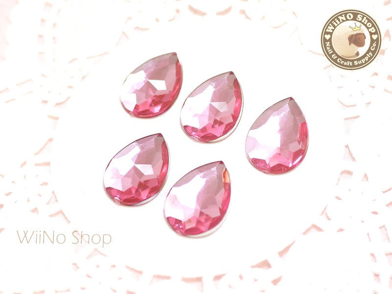 18 x 13mm Pink Light Rose Pear Drop Flat Back Acrylic Rhinestone - 5 pcs