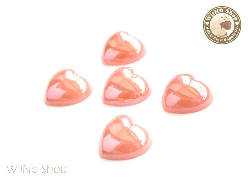 18mm Heart Pink Coral Metallic Flat Back Acrylic Cabochon - 5 pcs