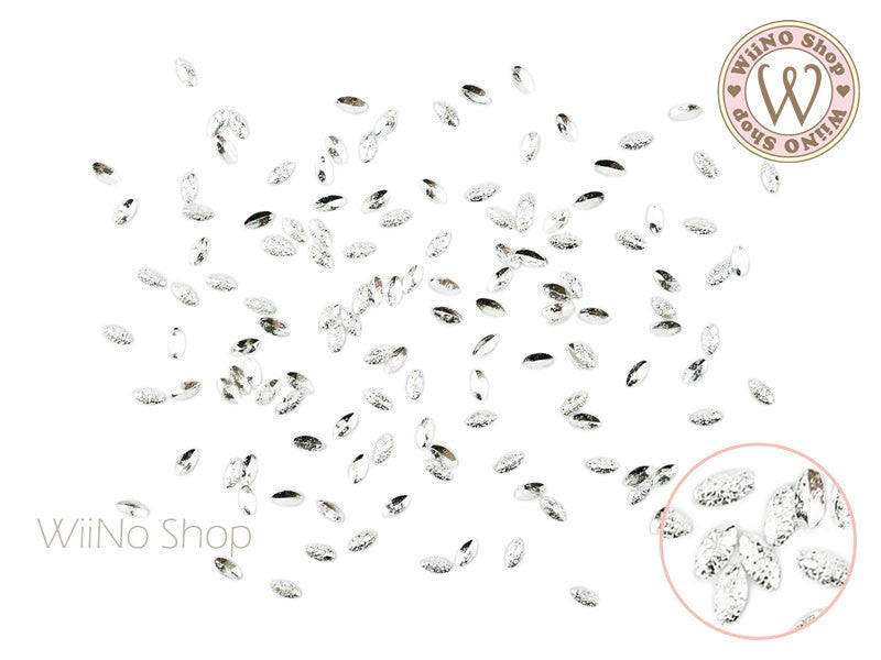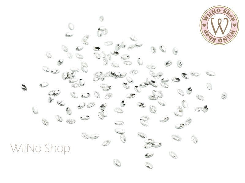 2 x 3mm Silver Textured Marquise Metal Studs - 25 pcs