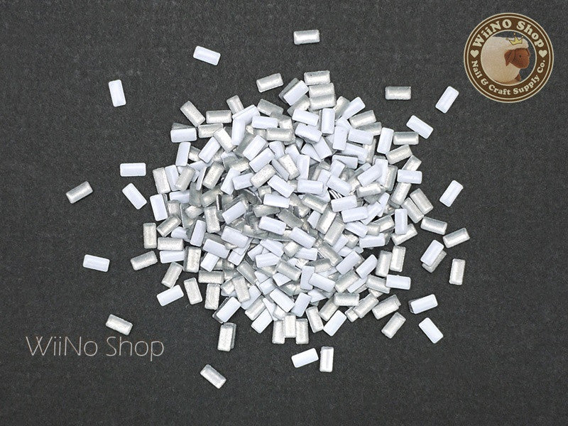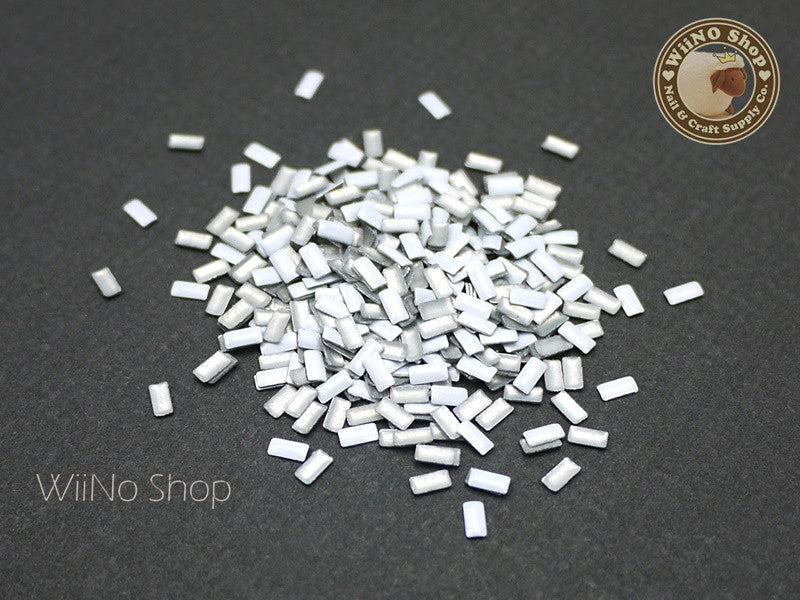 2 x 4mm White Rectangle Metal Studs - 100 pcs