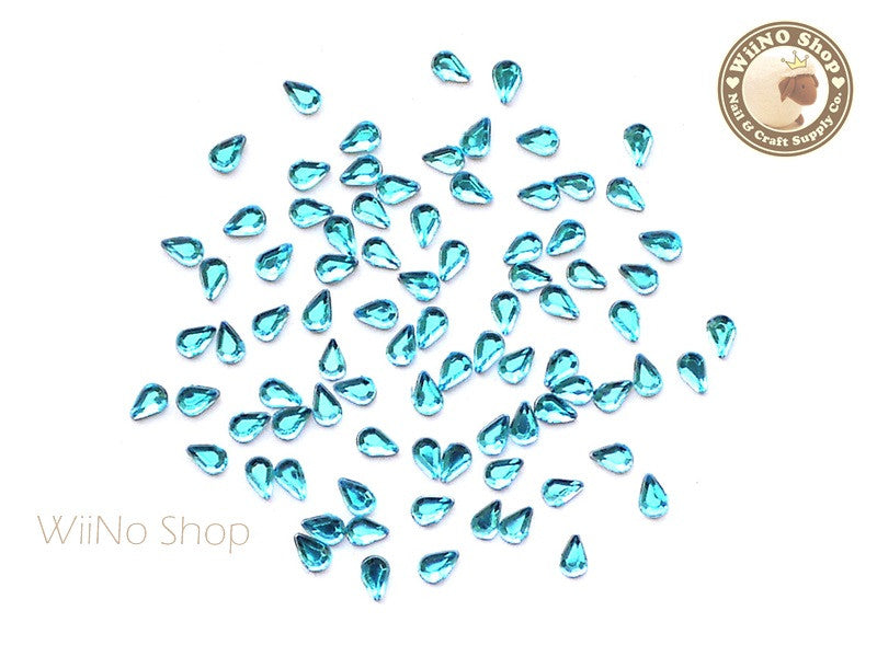 3.2 x 2.1mm Blue Aquamarine Drop Flat Back Acrylic Rhinestone Nail Art - 100 pcs