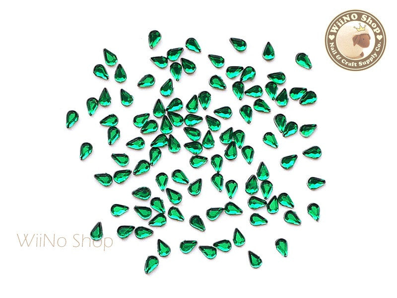 3.2 x 2.1mm Dark Green Drop Flat Back Acrylic Rhinestone Nail Art - 100 pcs