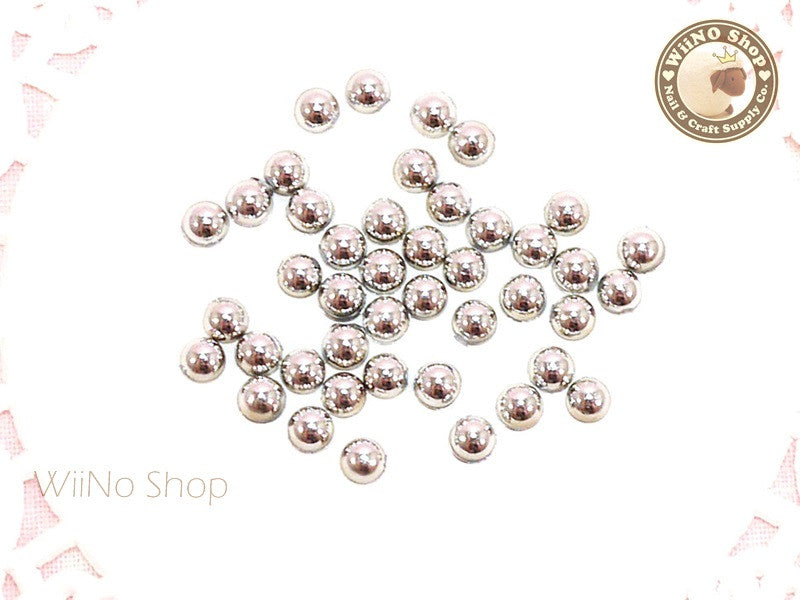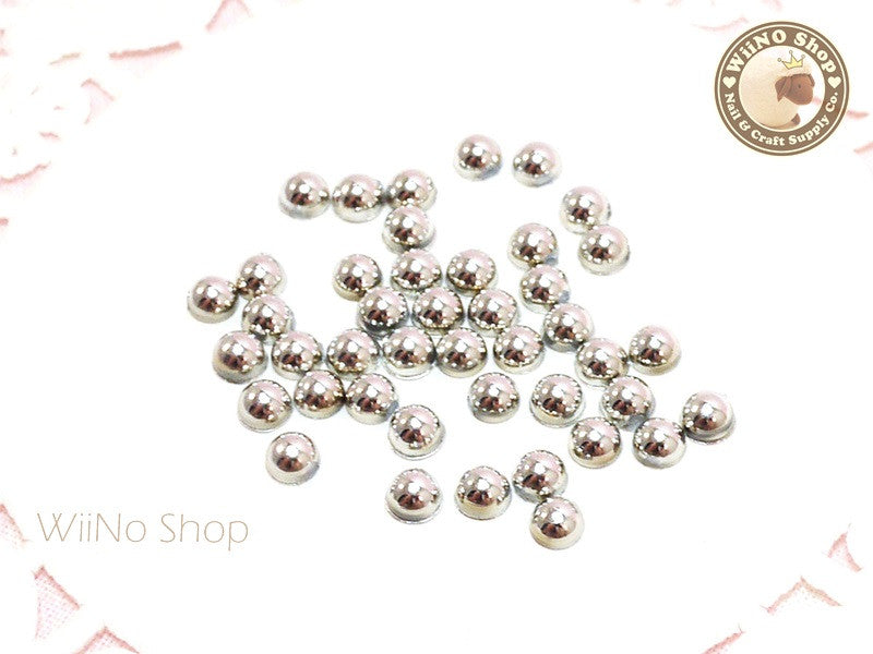 3.5mm Half Round Silver Chrome Flat Back Acrylic Cabochon Nail Art - 20 pcs