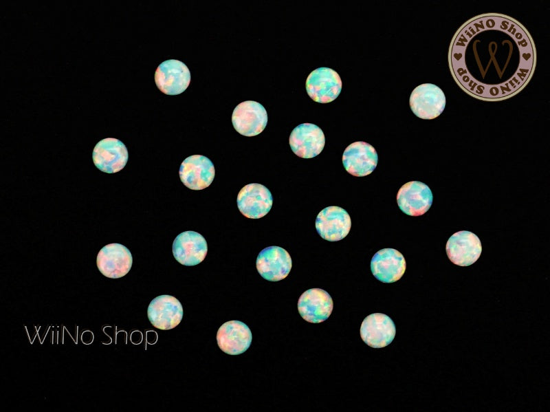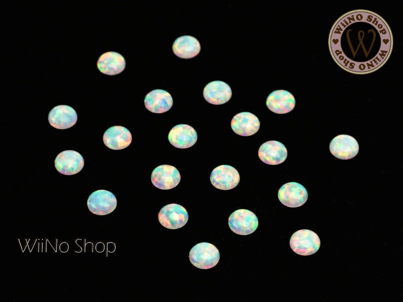 3mm White Opal Round Gemstone Cabochon - 3 pcs