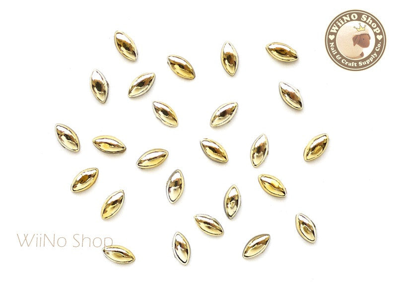3 x 6mm Half Marquise Gold Chrome Flat Back Acrylic Cabochon Nail Art - 15 pcs