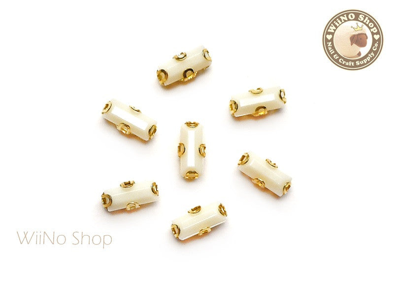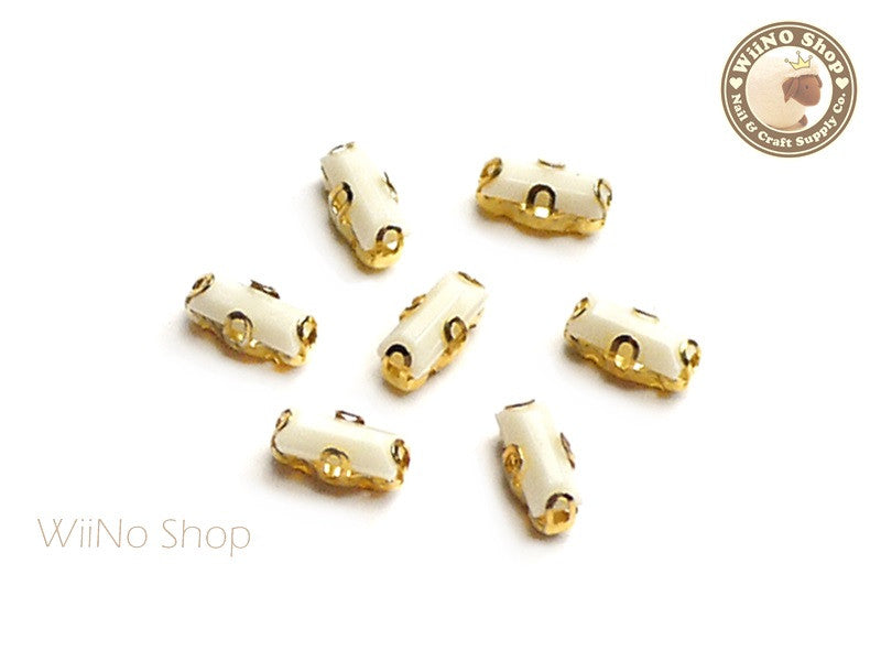 3 x 7mm Beige Rectangle Acrylic Rhinestone with Setting - 5 pcs