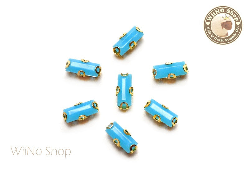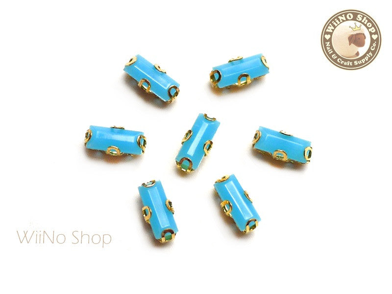 3 x 7mm Blue Rectangle Acrylic Rhinestone with Setting - 5 pcs