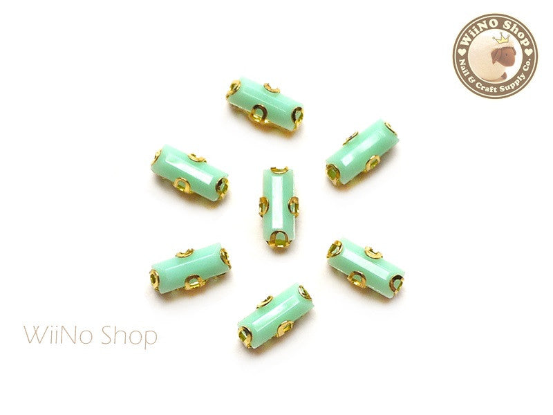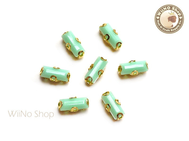 3 x 7mm Mint Rectangle Acrylic Rhinestone with Setting - 5 pcs
