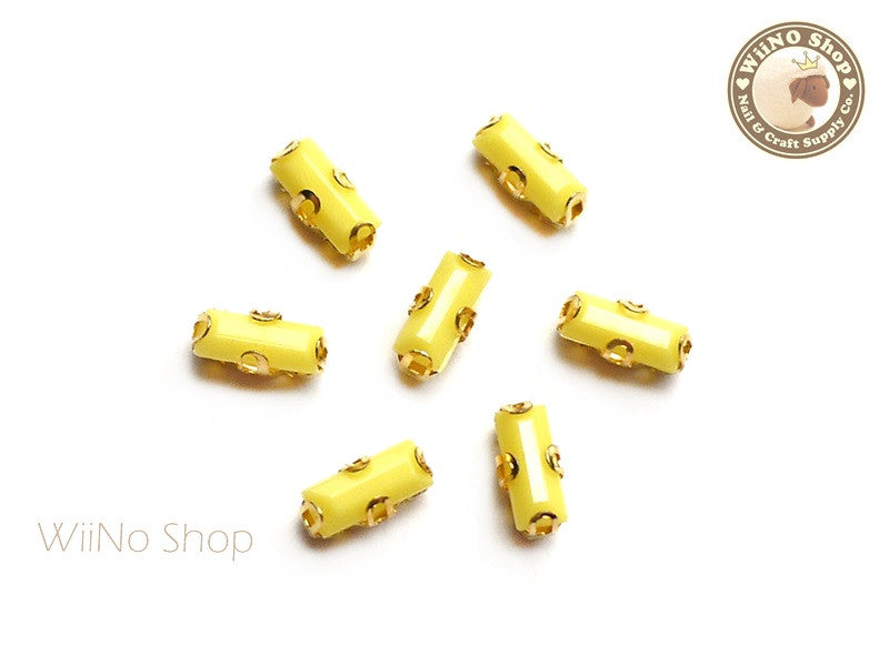 3 x 7mm Yellow Rectangle Acrylic Rhinestone with Setting - 5 pcs
