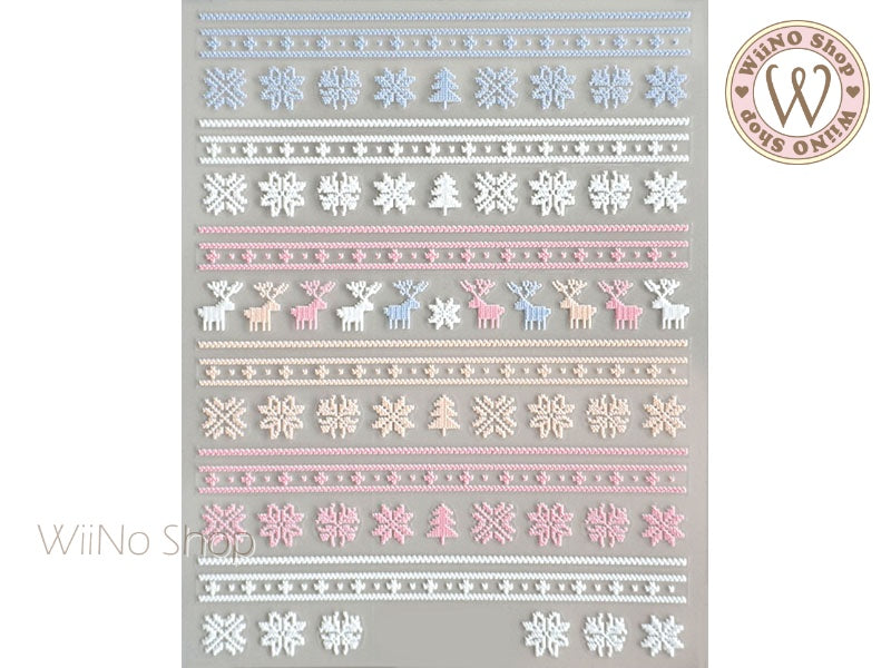 3D Pastel Reindeer Sweater Pattern Adhesive Nail Art Sticker - 1 pc (TS-263)