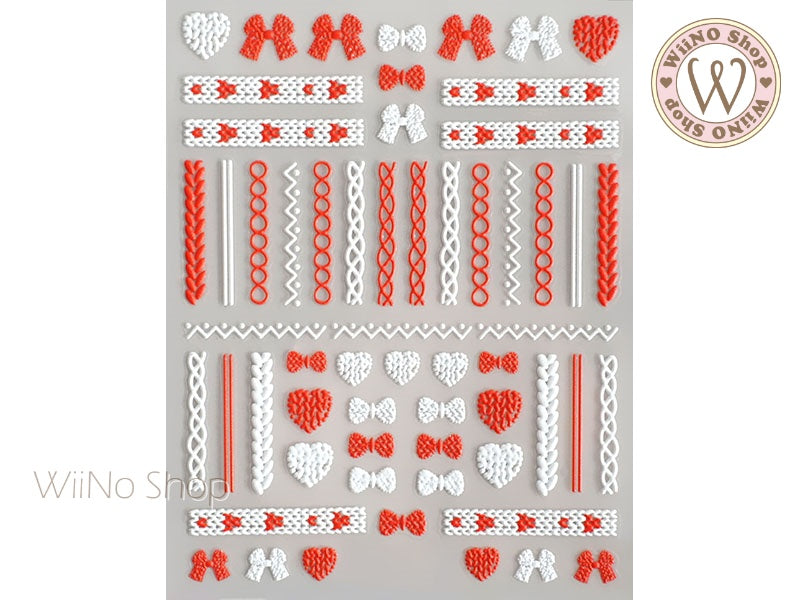 3D Red Sweater Pattern Adhesive Nail Art Sticker - 1 pc (TS-969)