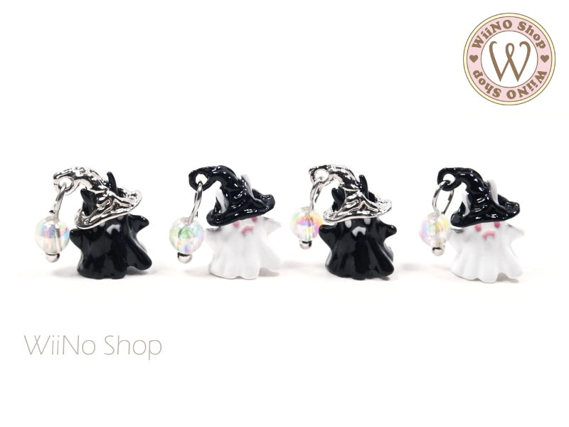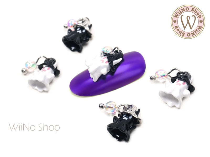 3D Ghost with Witch Hat Nail Art Dangle Charm - 2 pcs