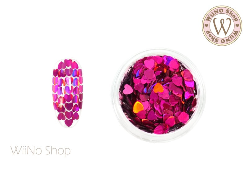 3mm Fuchsia Holographic Heart Glitter