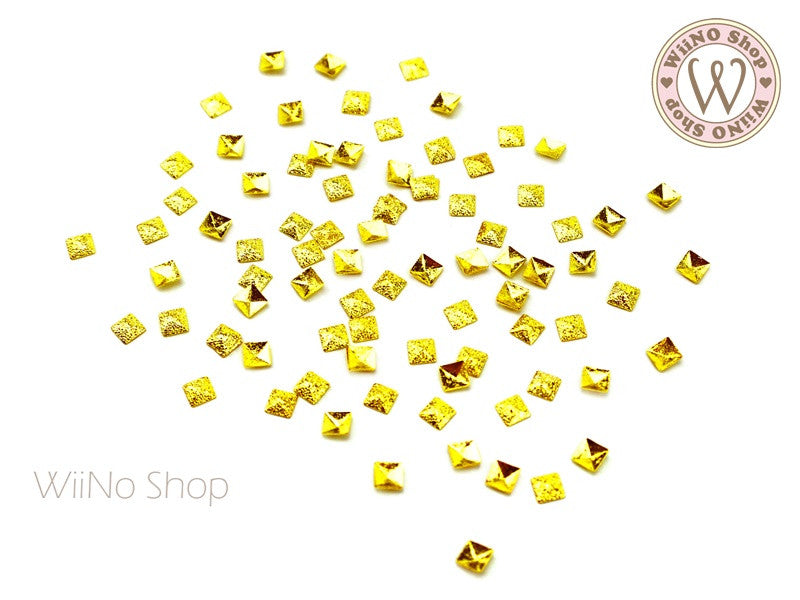 3mm Gold Textured Square Metal Studs - 25 pcs