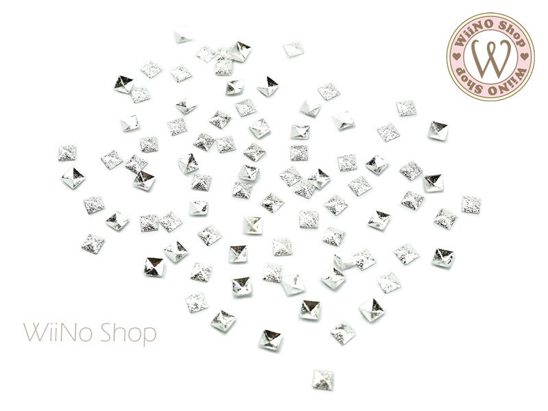3mm Silver Textured Square Metal Studs - 25 pcs