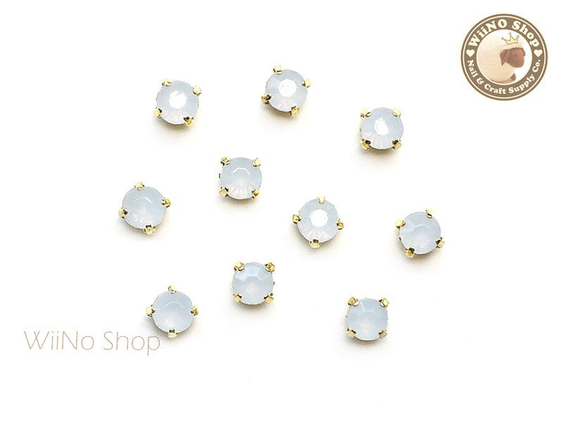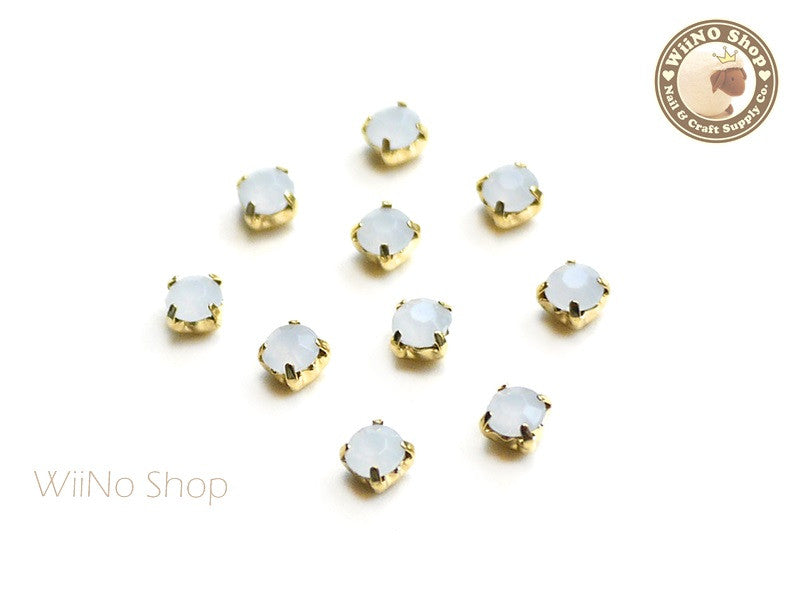 4mm White Opal Round Acrylic Rhinestone with Setting - 5 pcs