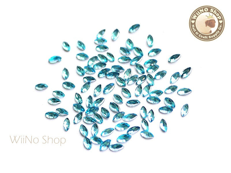 4 x 2mm Blue Aquamarine Marquise Navette Flat Back Acrylic Rhinestone Nail Art - 100 pcs