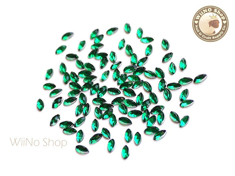 4 x 2mm Dark Green Marquise Navette Flat Back Acrylic Rhinestone Nail Art - 100 pcs