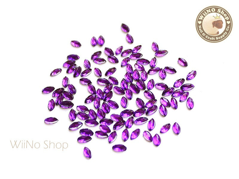 4 x 2mm Purple Violet Marquise Navette Flat Back Acrylic Rhinestone Nail Art - 100 pcs