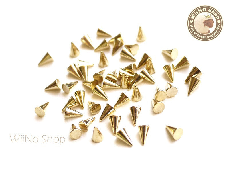 4 x 6mm Gold Spikes Studs Nail Art Decoration Acrylic Cabochon - 30 pcs