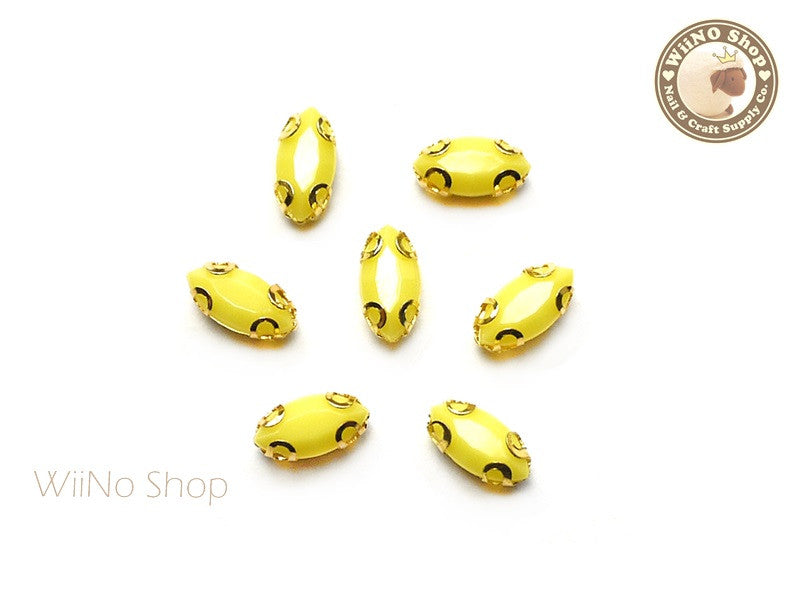 4 x 8mm Yellow Marquise Acrylic Rhinestone with Setting - 5 pcs