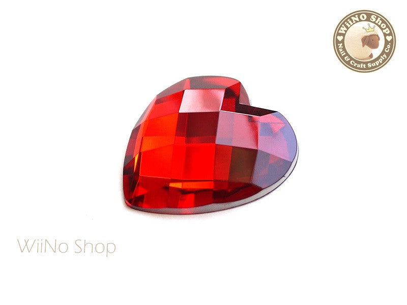40mm Large Red Siam Heart Square Cut Flat Back Acrylic Rhinestone - 1 pc