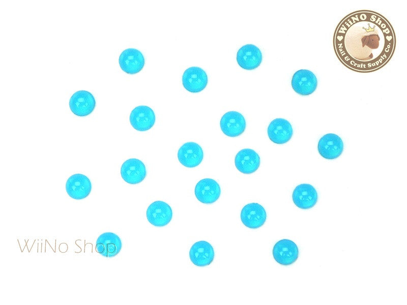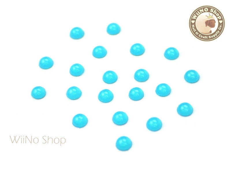 4mm Aqua Blue Opal Half Round Flat Back Acrylic Cabochon Nail Art - 15 pcs