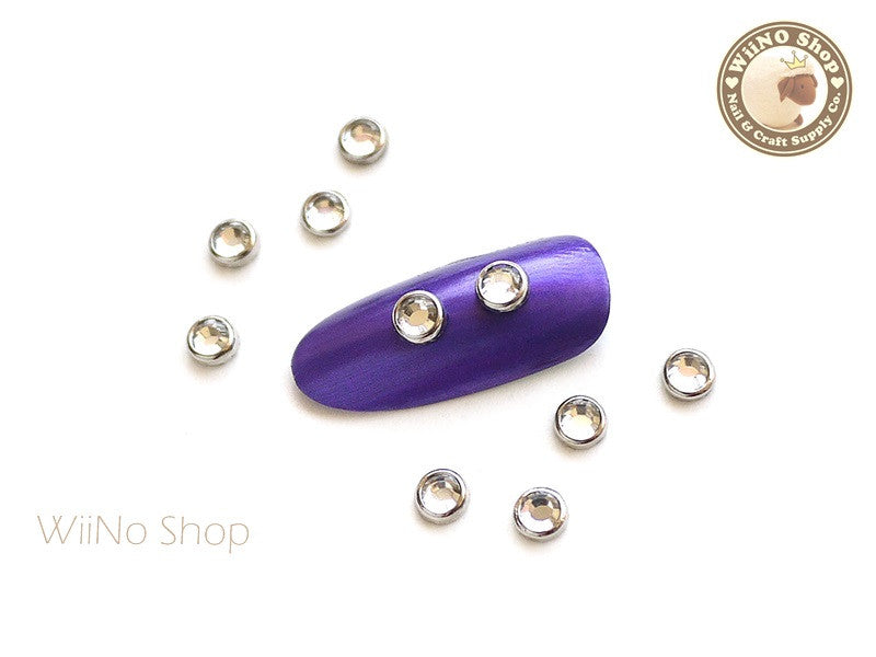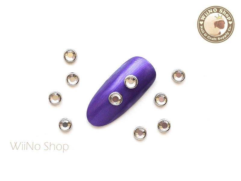 4mm Clear Crystal Silver Rim Cabochon Nail Art Decoration- 10 pcs