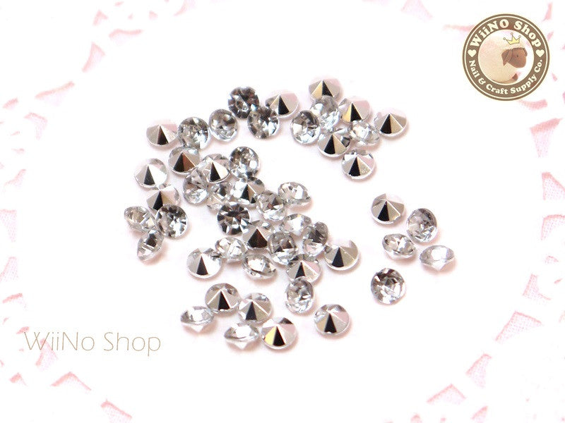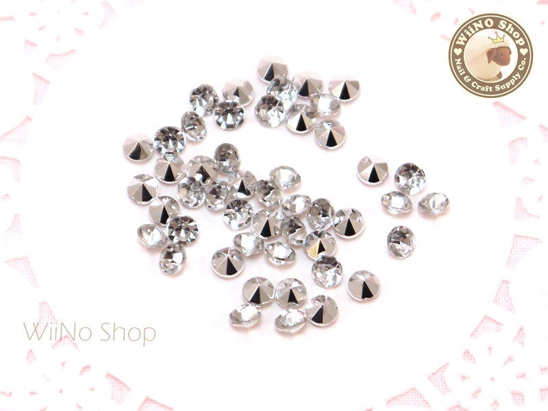 4mm Clear Round Diamond Style 3D Point Back Acrylic Rhinestone - 50 pcs