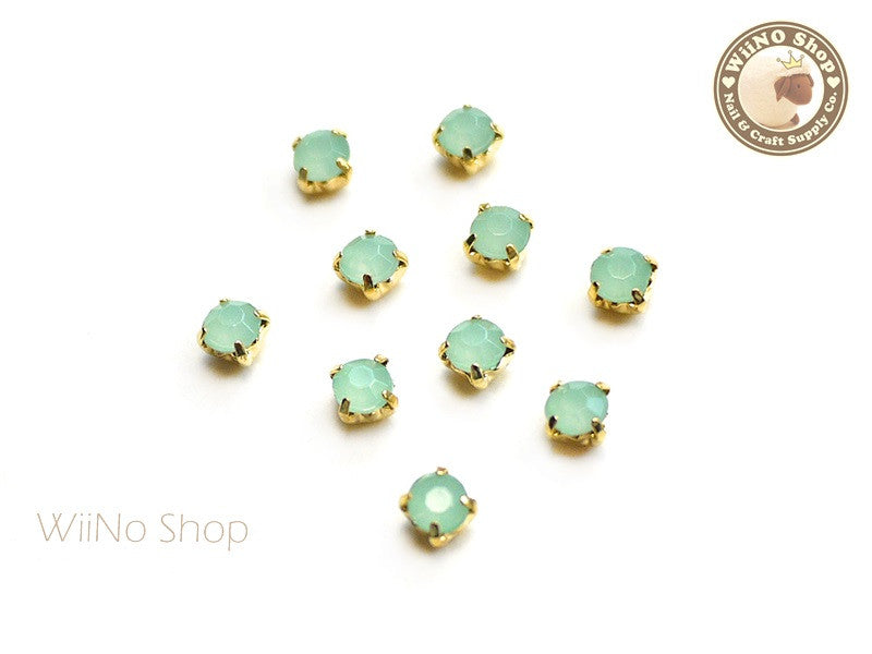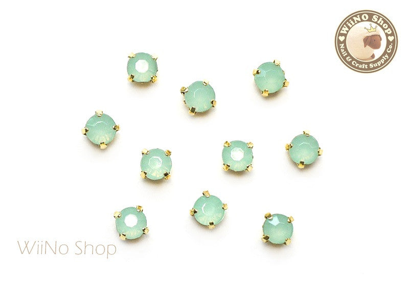 4mm Mint Opal Round Acrylic Rhinestone with Setting - 5 pcs