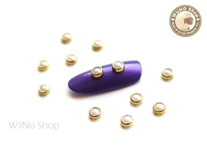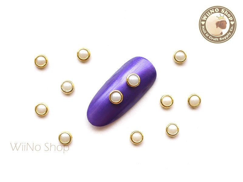 4mm Pearl Gold Rim Cabochon Nail Art Decoration- 10 pcs