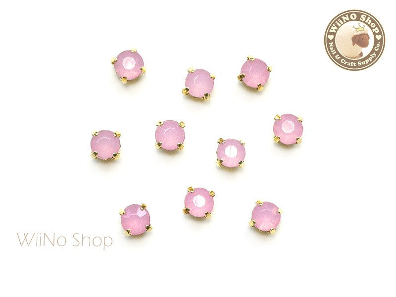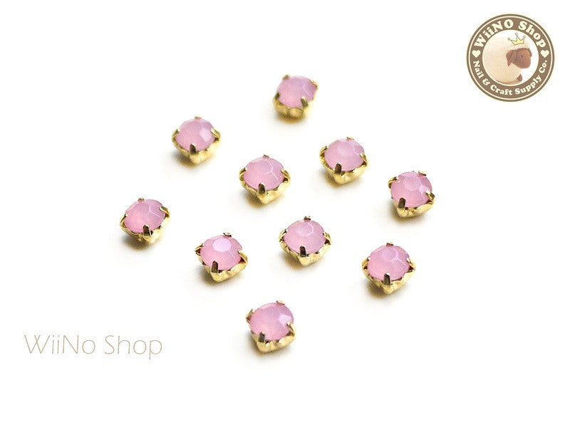 4mm Pink Opal Round Acrylic Rhinestone with Setting - 5 pcs