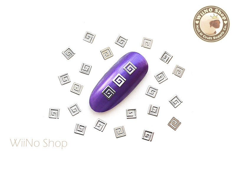 Silver Greek Key Square Ultra Thin Nail Art Metal Decoration - 25 pcs
