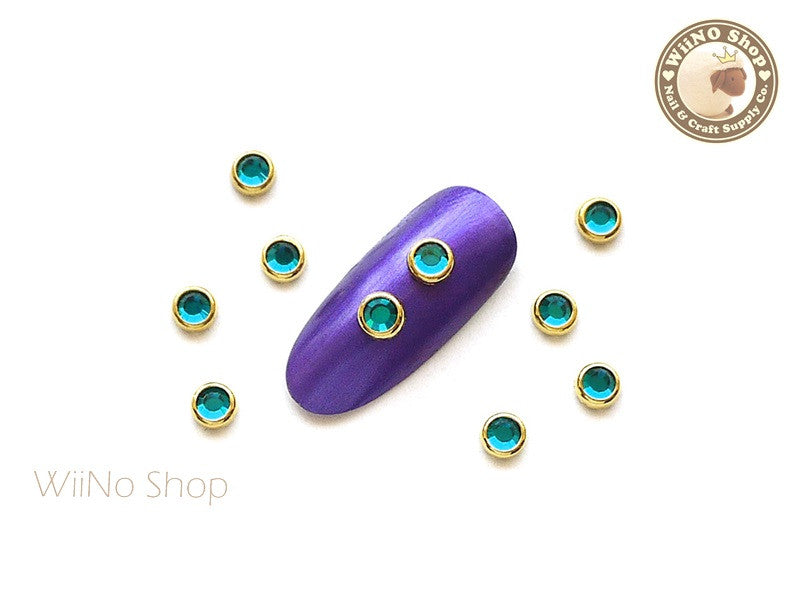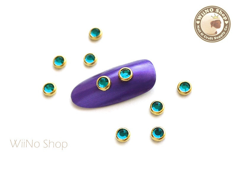 4mm Turquoise Crystal Gold Rim Cabochon Nail Art Decoration- 10 pcs