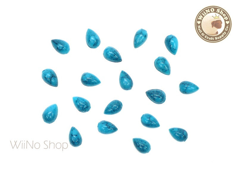 6 x 4mm Blue Turquoise Drop Flat Back Acrylic Cabochon - 15 pcs