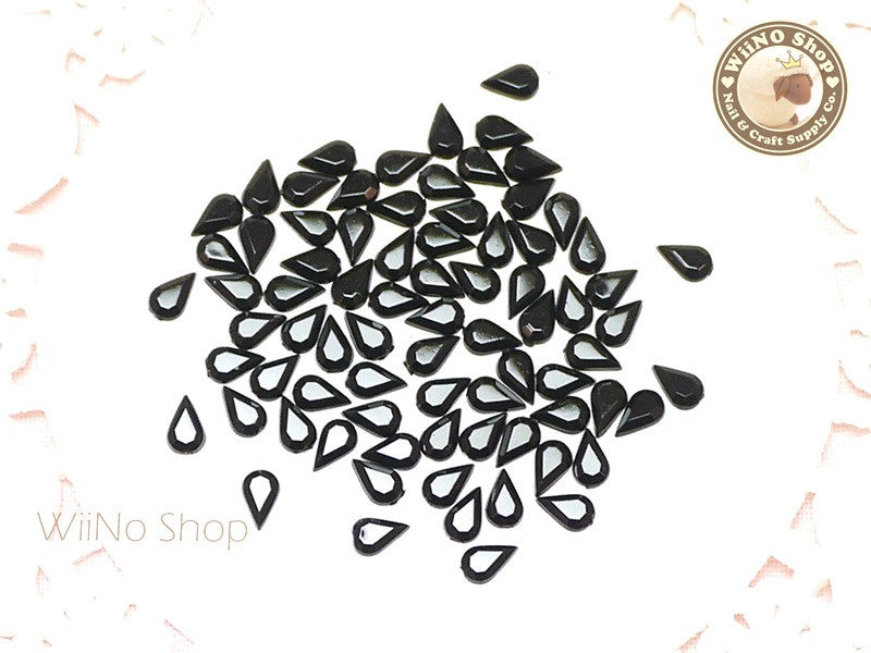5 x 3mm Black Jet Drop Flat Back Acrylic Rhinestone Nail Art - 100 pcs