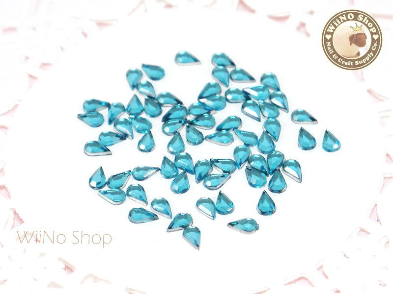 5 x 3mm Blue Aquamarine Drop Flat Back Acrylic Rhinestone Nail Art - 100 pcs