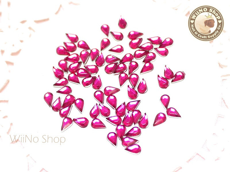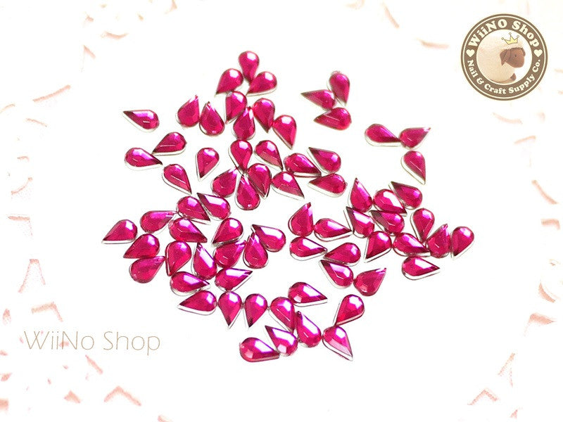 5 x 3mm Fuchsia Hot Pink Drop Flat Back Acrylic Rhinestone Nail Art - 100 pcs