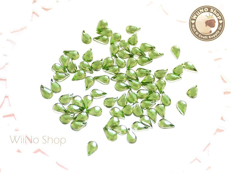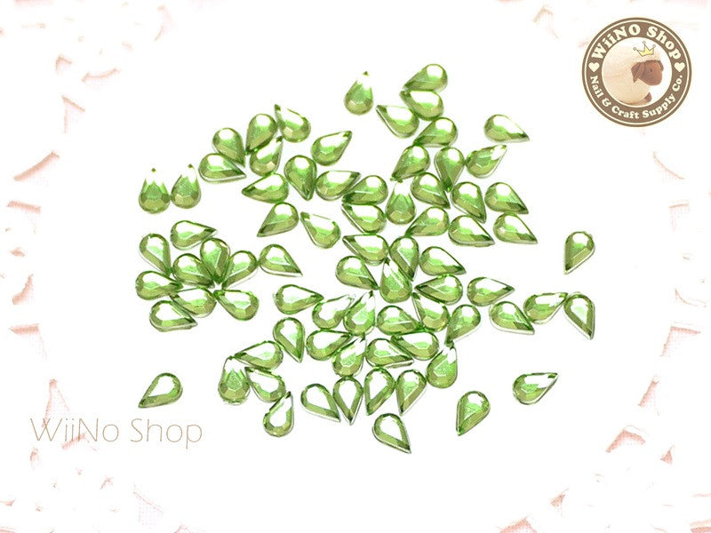 5 x 3mm Light Green Perdot Drop Flat Back Acrylic Rhinestone Nail Art - 100 pcs