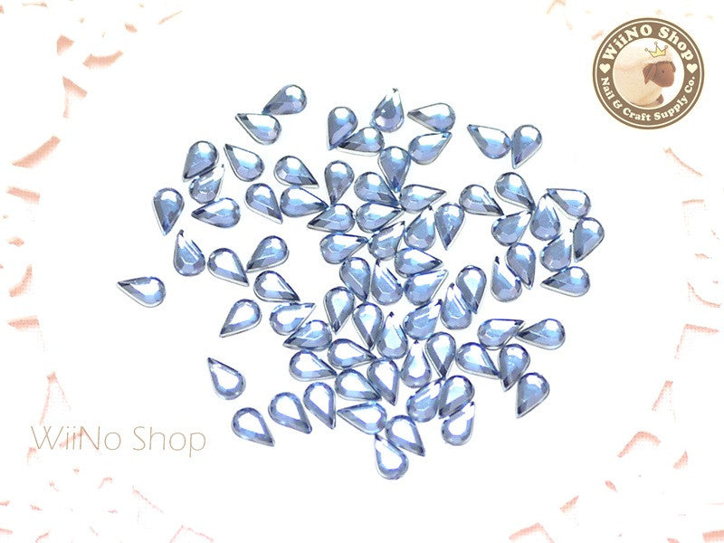 5 x 3mm Light Sapphire Blue Drop Flat Back Acrylic Rhinestone Nail Art - 100 pcs