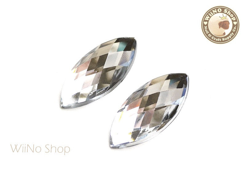 32 x 15mm Clear Marquise Navette Square Cut Flat Back Acrylic Rhinestone - 2 pcs